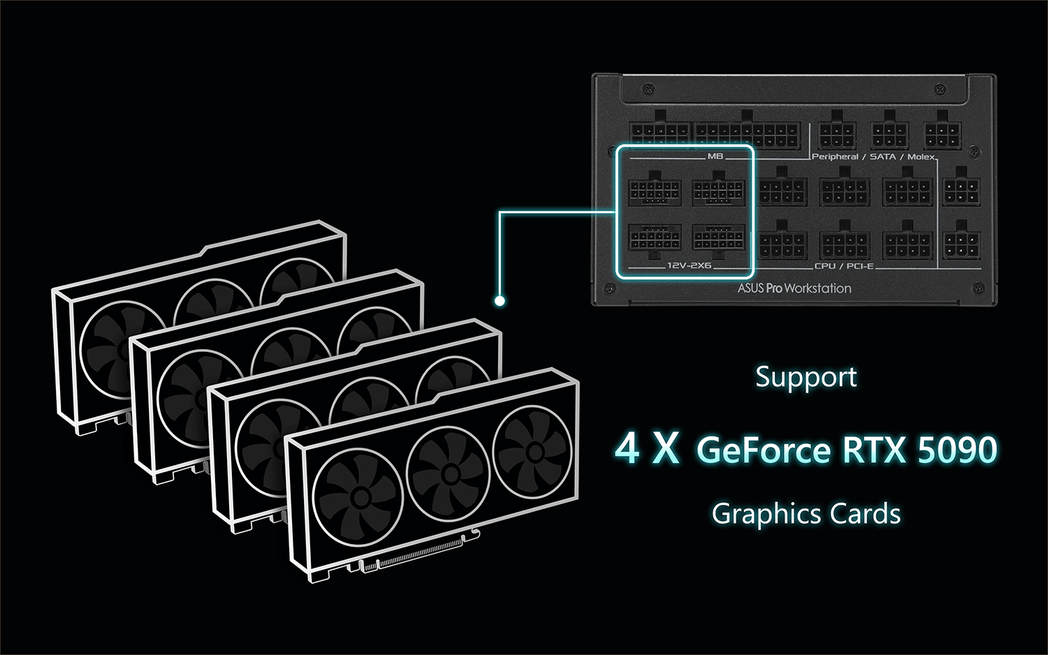 ASUS has recently unveiled its Pro WS Platinum series of power supplies, a lineup tailored for high-end professional workstations and multi-GPU configurations, with models available in 1600W, 2200W, and 3000W capacities to meet the demands of intensive tasks like AI workloads, deep learning, and 3D rendering. The flagship 3000W model, known as the ASUS Pro WS 3000P, stands out for its ability to deliver stable power to up to four NVIDIA GeForce RTX 5090 or RTX PRO 6000 Blackwell GPUs simultaneously, making it ideal for cutting-edge setups that require massive computational power without compromising on reliability. Complementing this, the 2200W variant (ASUS Pro WS 2200P) supports up to four GeForce RTX 5080 GPUs, while the 1600W model (ASUS Pro WS 1600P) can handle up to two RTX 5090 cards, ensuring scalability for various professional needs.