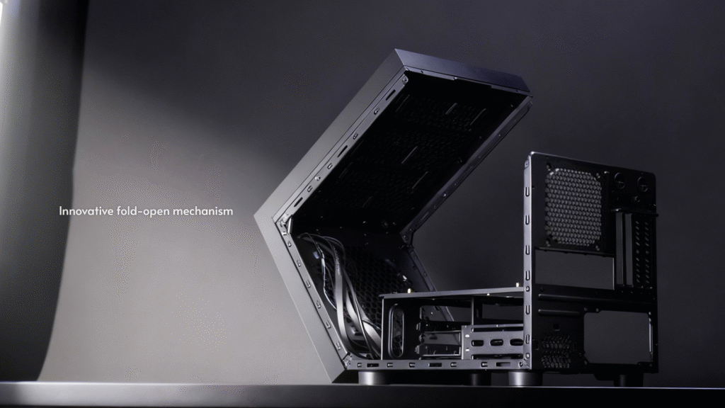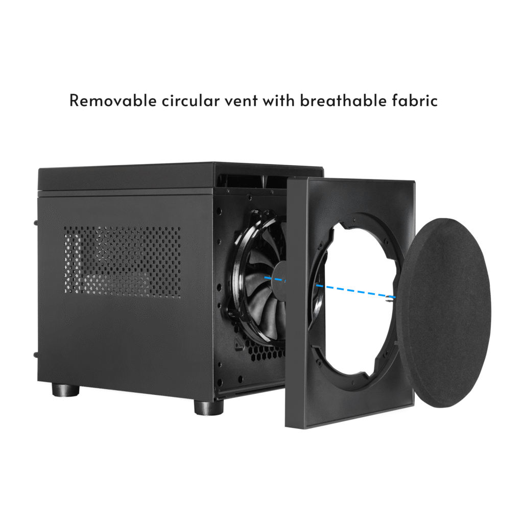The Chieftec CI-03B-OP, known as “The Cube,” is a newly released compact mATX cube chassis designed for modern PC builds, particularly those emphasizing minimalist aesthetics and multifunctional use in small spaces. Drawing inspiration from Hi-Fi audio equipment and furniture craftsmanship, it features a sleek black finish with a unique circular vent on the front covered in breathable fabric, evoking the look of a subwoofer speaker while ensuring efficient airflow for the pre-installed 200mm PWM fan equipped with a long-life HDB bearing for quieter operation. This innovative design allows the case to blend seamlessly into home environments, whether for gaming, multimedia setups, or everyday computing, and includes an easy-access fold-open mechanism that simplifies hardware installation without the need for extensive disassembly.