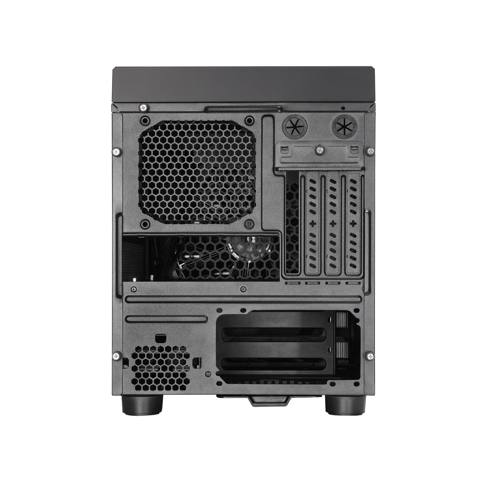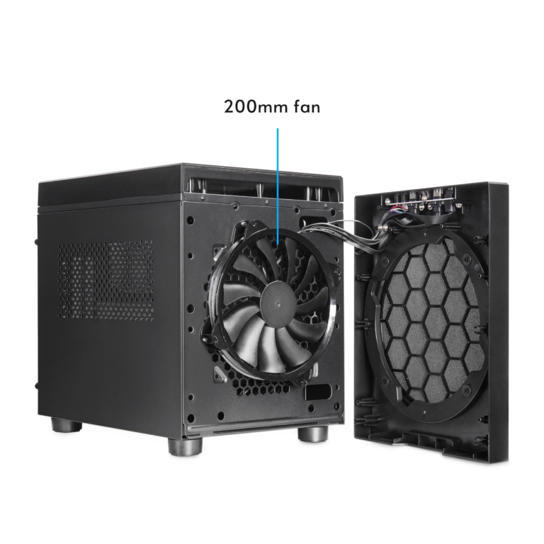 Cooling flexibility stands out as a key feature, catering to both air and liquid setups in its compact form. A single 200mm PWM fan comes pre-installed at the front for intake, with support for an additional 120mm fan at the rear for exhaust. The top panel allows for two 120mm fans, one 200mm fan, or a 240mm radiator, making it suitable for high-performance components without compromising the cube’s small footprint. This setup ensures effective thermal management, ideal for users building powerful yet quiet systems.