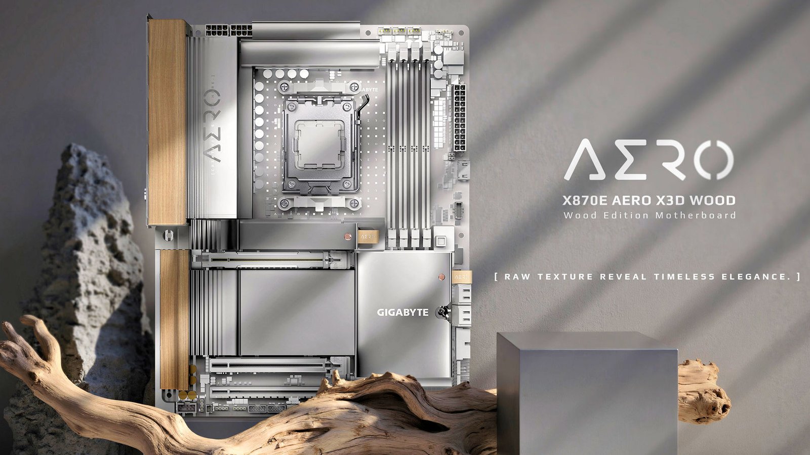 Gigabyte has unveiled the X870E AERO X3D WOOD motherboard, a groundbreaking AM5 socket platform designed for AMD Ryzen 9000, 8000, and 7000 series processors, announced on December 5, 2025, as a fusion of natural elegance and cutting-edge performance tailored for discerning enthusiasts who view their PC as an extension of their living space. This flagship board stands out with its unique AERO WOOD aesthetic, featuring real wood-grain panels that embrace the “Zain” philosophy of imperfection and organic transformation, evoking timeless warmth through raw textures and premium leather pull tabs for a tactile, luxurious feel that harmonizes high-performance computing with home decor. At its core, the X870E AERO X3D WOOD boasts a robust 16+2+2 phases Twin Digital VRM design with DrMOS 60A phases (8+8 parallel for VCORE, plus dedicated SOC and MISC phases), powered by an 8-layer server-grade PCB with 2x copper enhancement and back-drilling technology to minimize signal reflections, boost timing accuracy, and enable overclocking stability, all reinforced by UD Power Connectors with solid pins for superior conductivity and thermal dissipation.